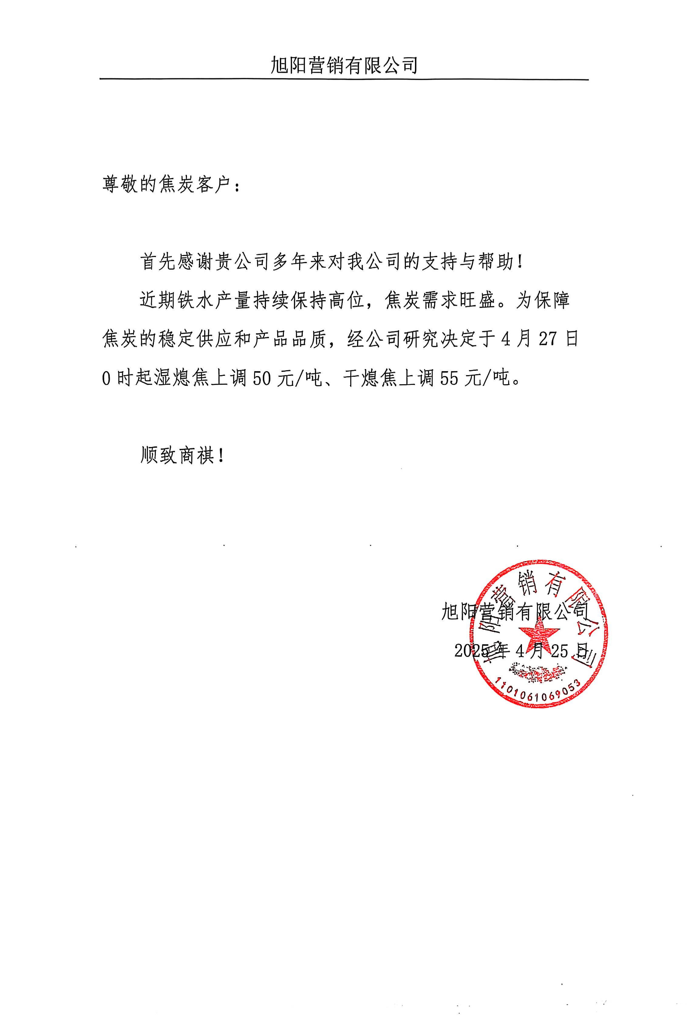 - 快讯:4月25日旭阳营销有限公司焦炭价格上调50-55元/吨2025/4/25