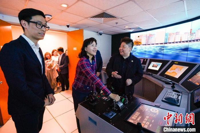 4月26日,香港特区政府运输及物流局局长陈美宝在网志中表示,她近期带队到访特区政府海事处。图为陈美宝在海事处船舶模拟驾驶器体验驾驶。(香港特区政府运输及物流局供图)