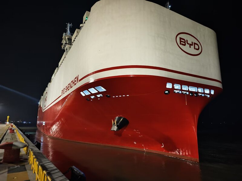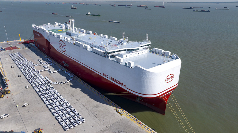4月27日晚上9时15分,在苏州港太仓港区,一艘红白色相间的“钢铁巨轮”缓缓驶离海通汽车码头。这是全球最大汽车运输船比亚迪“深圳号”,装载着7000余辆比亚迪新能源汽车首航巴西,标志国产汽车远洋出海能力迈向新台阶。