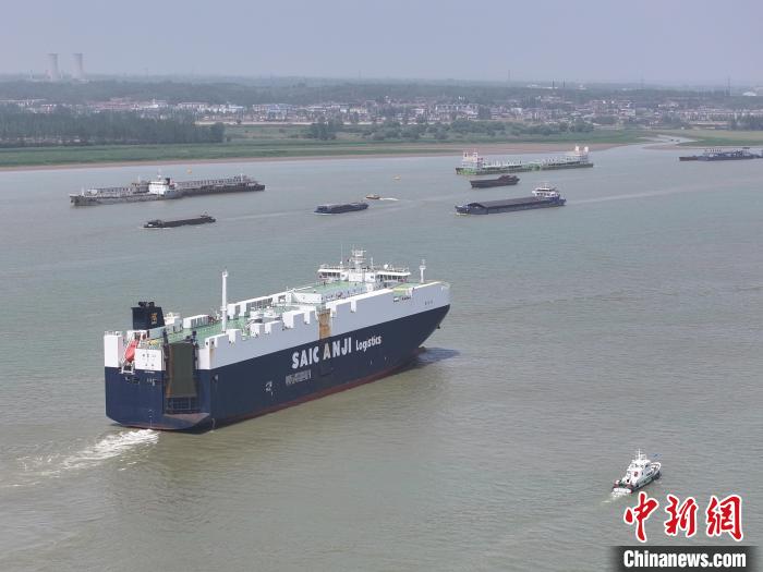 中新社南京5月7日电 (记者 朱晓颖)中国籍国际航行滚装船“安吉24”轮装载508辆中国造商品车,7日自南京港江盛汽车码头离泊驶往墨西哥。本航次启动后,南京港对外出口车辆将无需再从其他港口中转,南京水运国际物流通道得以进一步畅通,标志着南京区域性航运物流中心建设再上新台阶。