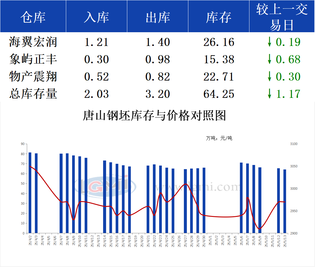 5月13日唐山钢坯库存早报