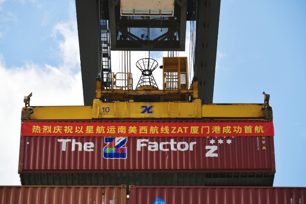 5月16日,满载机械设备、建材、鞋服的“以星康多尔(ZIM CONDOR)”轮从厦门港国际货柜码头启航,标志着福建省首条直航厄瓜多尔的ZAT航线正式开通。