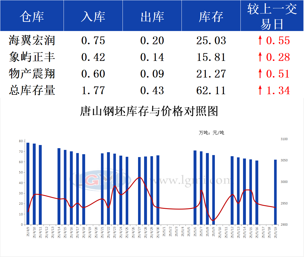 5月19日唐山钢坯库存早报