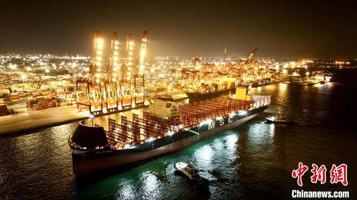 中新社青岛5月19日电 (胡耀杰 张孝鹏)“地中海弗罗拉”轮(MSC FLORA)19日满载货物离开山东港口青岛港集团有限公司(简称“山东港口青岛港”)所属码头,标志着由地中海航运(MSC)运营的新一条中东航线正式开通。这是山东港口青岛港本月新增的第3条通往共建“一带一路”国家和地区的航线。