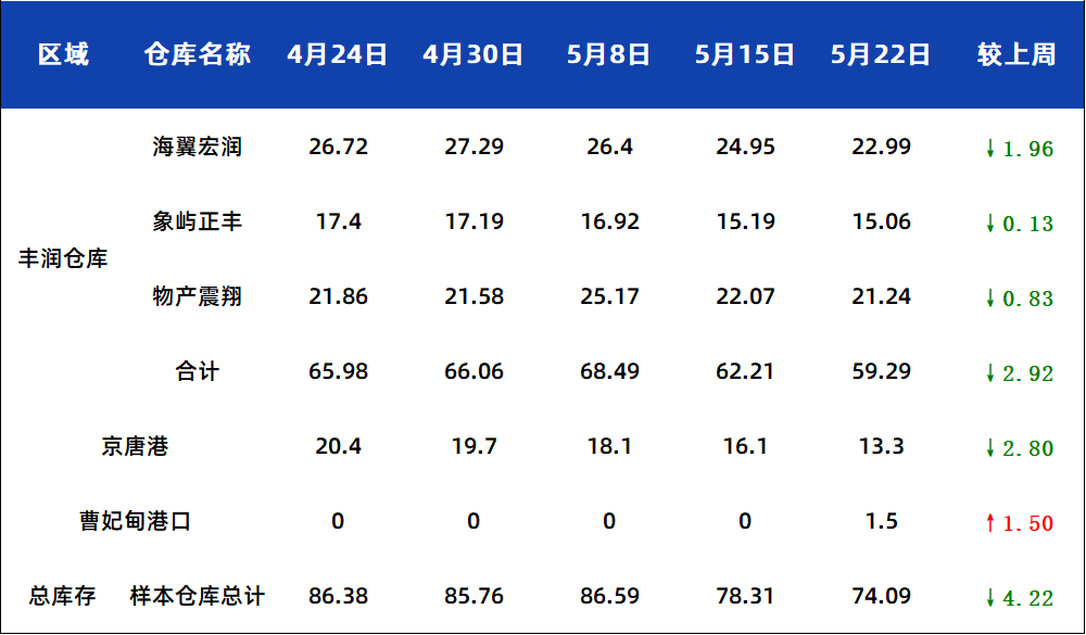 - 5月22日唐山钢坯库存周统计2025/5/22