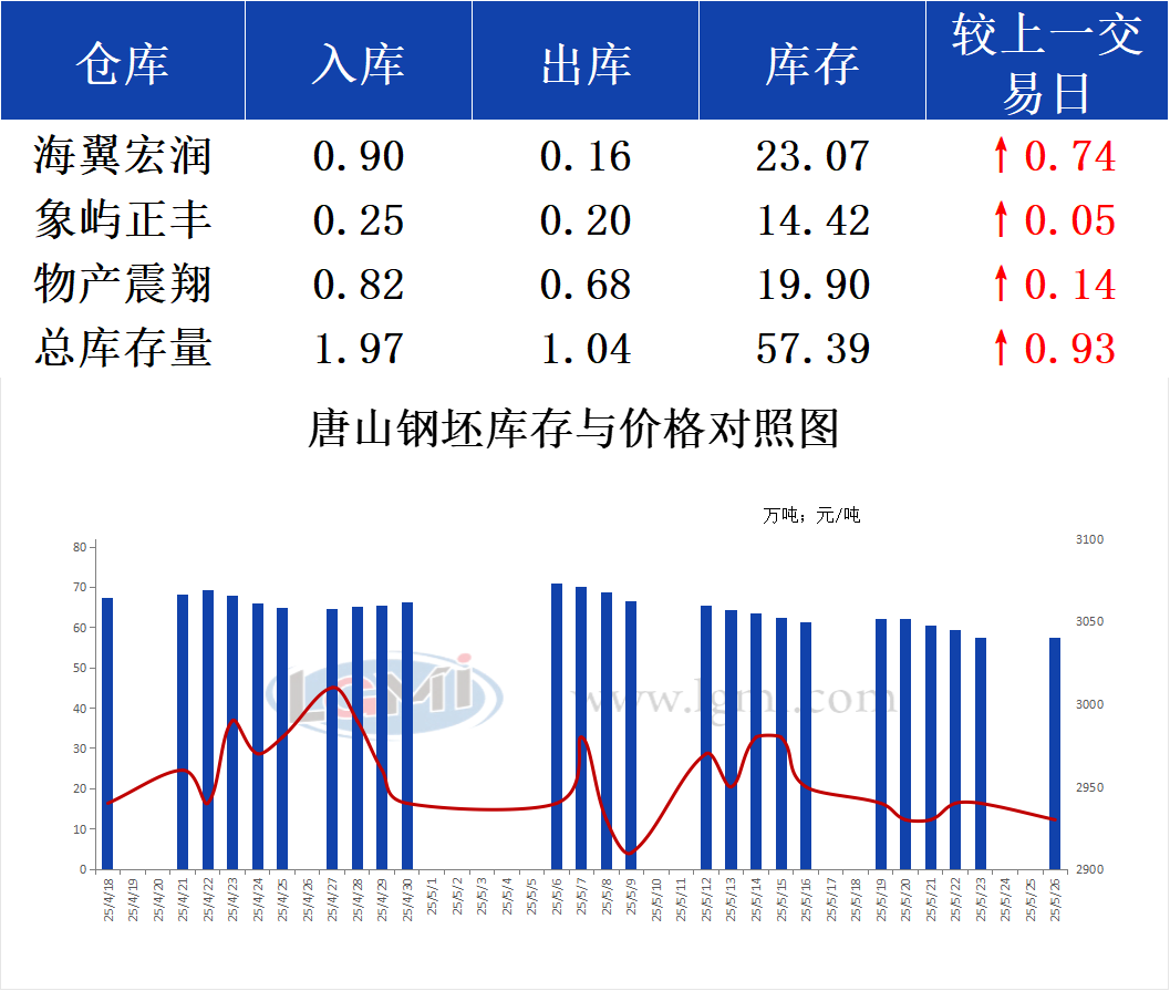 5月26日唐山钢坯库存早报