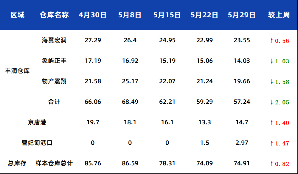 5月29日唐山钢坯库存周统计