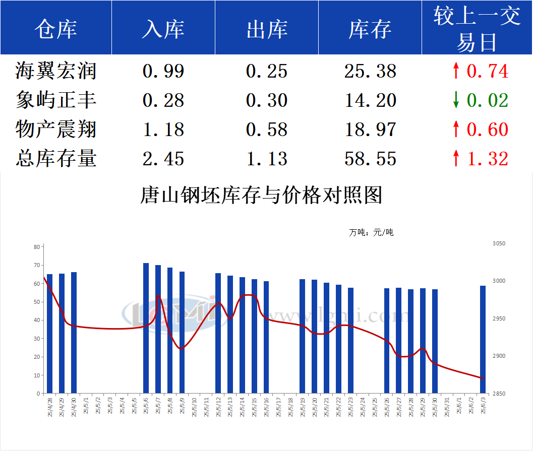 截至今晨,唐山地区样本仓库钢坯库存总量约58.55万吨,单日入库总量2.45万吨,出库总量1.13万吨。
