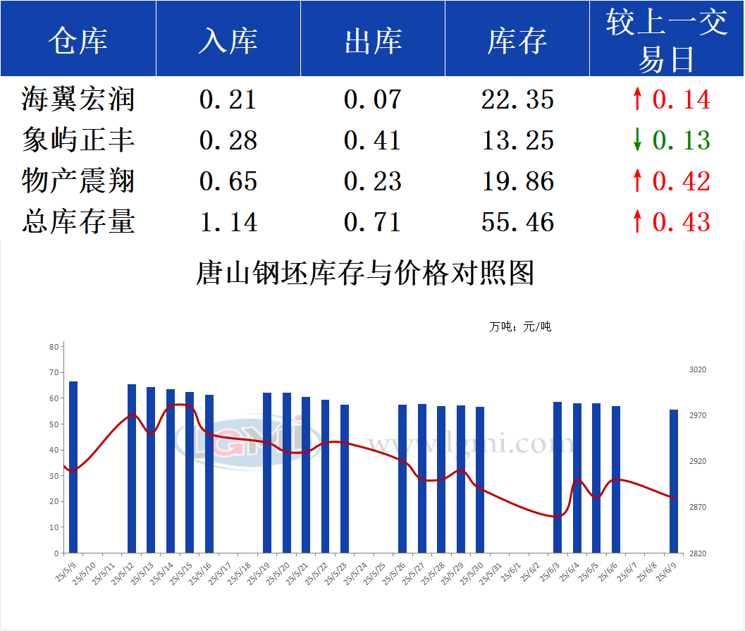6月9日唐山钢坯库存早报