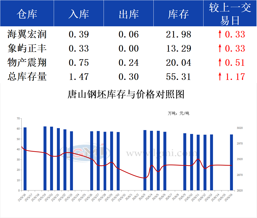 6月16日唐山钢坯库存早报