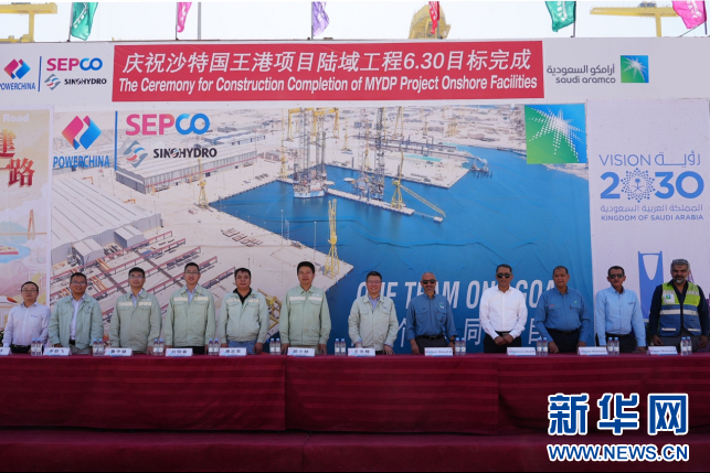 新华网利雅得7月2日电(记者罗晨 王海洲)沙特阿拉伯国家石油公司(沙特阿美公司)与中国电建集团山东电力建设有限公司(山东电建)近日在沙特萨勒曼国王国际综合港务设施项目(以下简称沙特国王港项目)现场举行该项目陆域工程全面完成庆祝仪式。