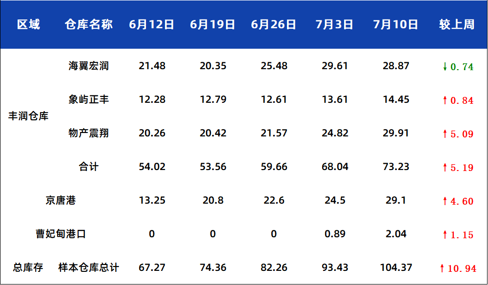 7月10日唐山钢坯库存周统计