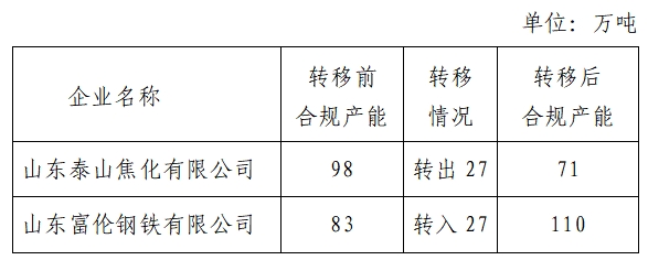 2025年6月4日至6月10日,山东省工信厅对山东泰山焦化有限公司27万吨焦化合规产能指标转移给山东富伦钢铁有限公司进行了公示,公示期间无异议,现予以公告,欢迎社会公众监督。监督电话:0531-51782887。