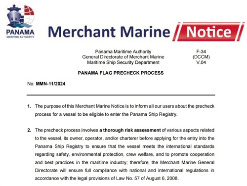 根据公告内容,这一政策适用于新申请加入巴拿马船旗的船舶或已注册船舶更换船东/租家。若船舶已注册于巴拿马,仅更换船名或操作公司则可豁免。