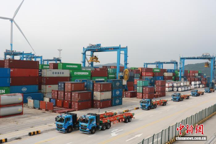 8月4日,无人驾驶的集装箱卡车正在宁波舟山港梅山港区作业。中新社记者 王逸飞 摄