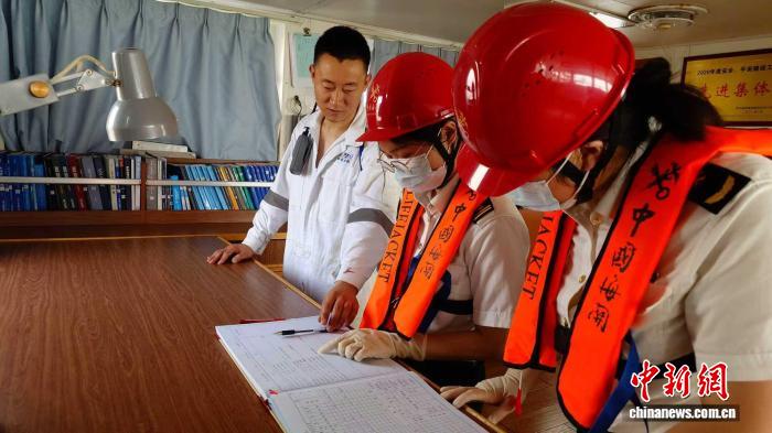 8月4日,武汉新港海关关员对货轮开展卫生检查。武汉海关供图