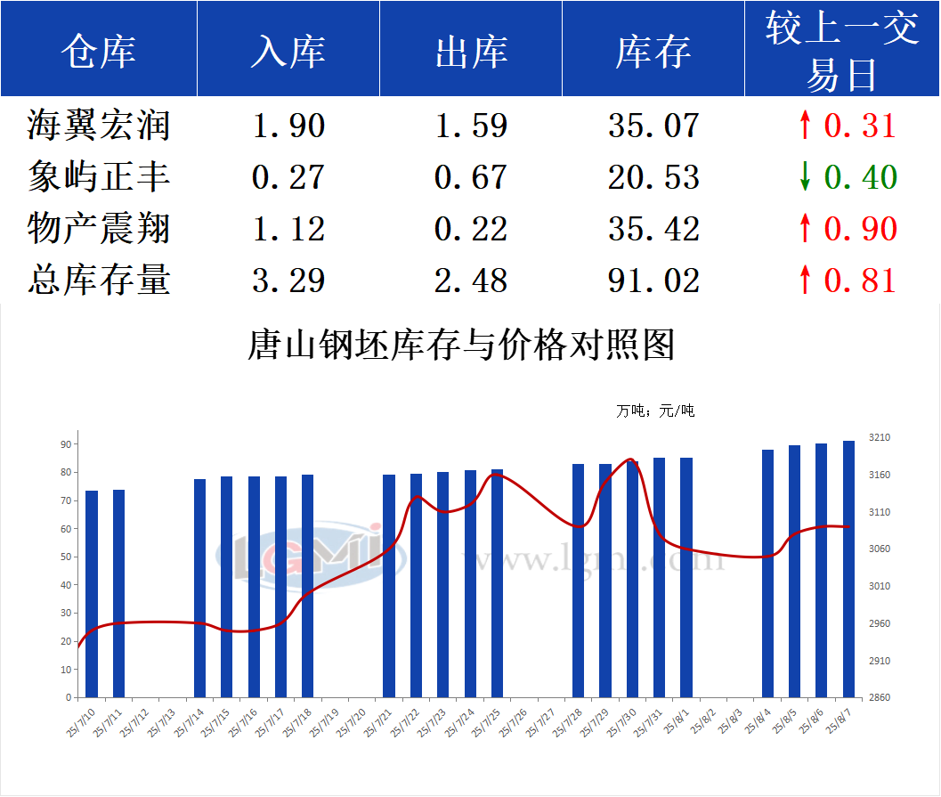 8月7日唐山钢坯库存早报