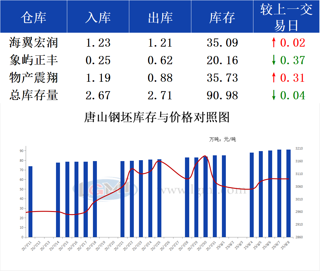 8月8日唐山钢坯库存早报