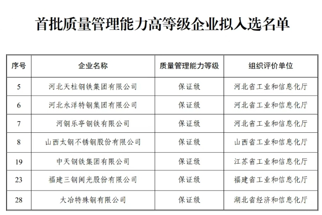 8月6日,工业和信息化部发布了首批质量管理能力高等级企业拟入选名单,包含43家评价复核结果达到保证级及以上高等级企业。