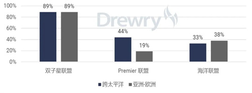 根据向美国联邦海事委员会提交的"双子星"合作协议文件,其目标包括;(1)实现船舶运营效率与利用率最大化;(2)提供具有高度准班率和环保性能的优质服务;(3)以创造客户价值与提供选择空间的方式满足各方客户需求。在"双子星"合作运营满六个月之际,德路里认为现已可对其成效进行评估,部分依据来自该公司对承运商表现的独立分析。