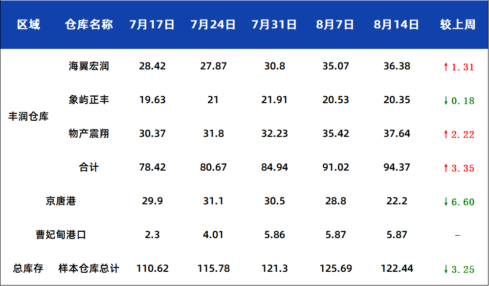 - 8月14日唐山钢坯库存周统计2025/8/14