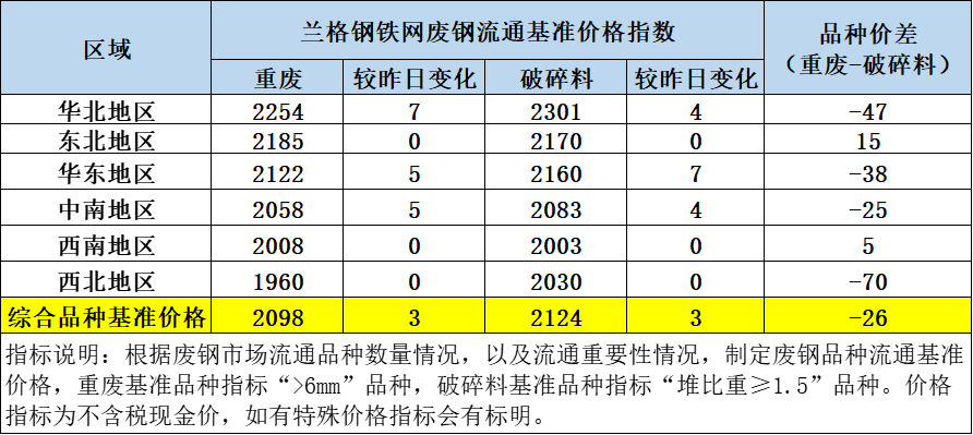 8月26日兰格钢铁网废钢流通基准价格指数为2111涨3