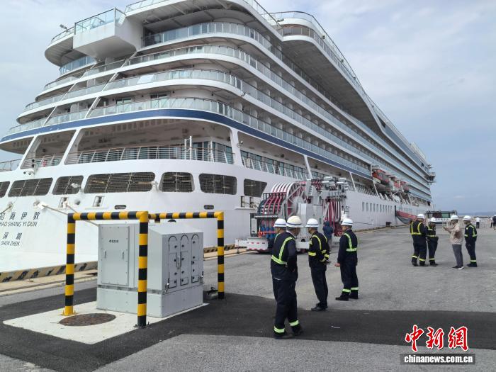中新网大连8月25日电 (记者 杨毅)记者25日从辽宁港口集团获悉,随着“招商伊敦”号邮轮近日稳稳靠泊大连港国际邮轮中心,东北港口首个大型邮轮码头岸电工程首次连船测试成功,标志着辽宁港口集团具备向10万吨级以上大型邮轮提供高压岸电接驳的能力。
