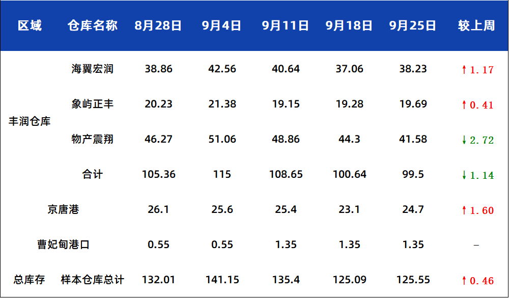- 9月25日唐山钢坯库存周统计2025/9/25