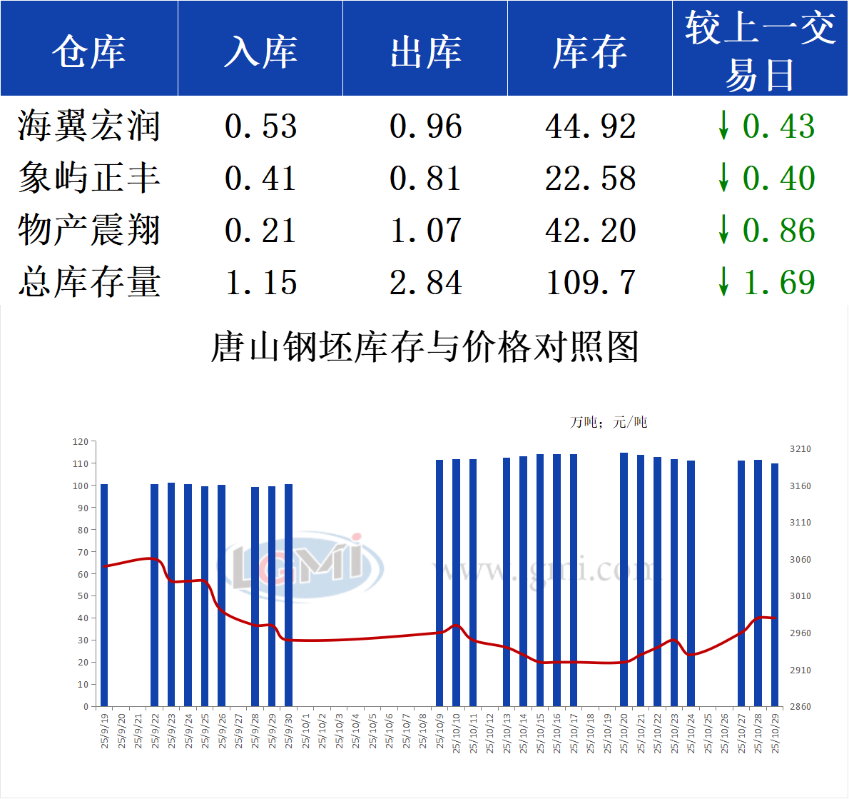 10月29日唐山钢坯库存早报
