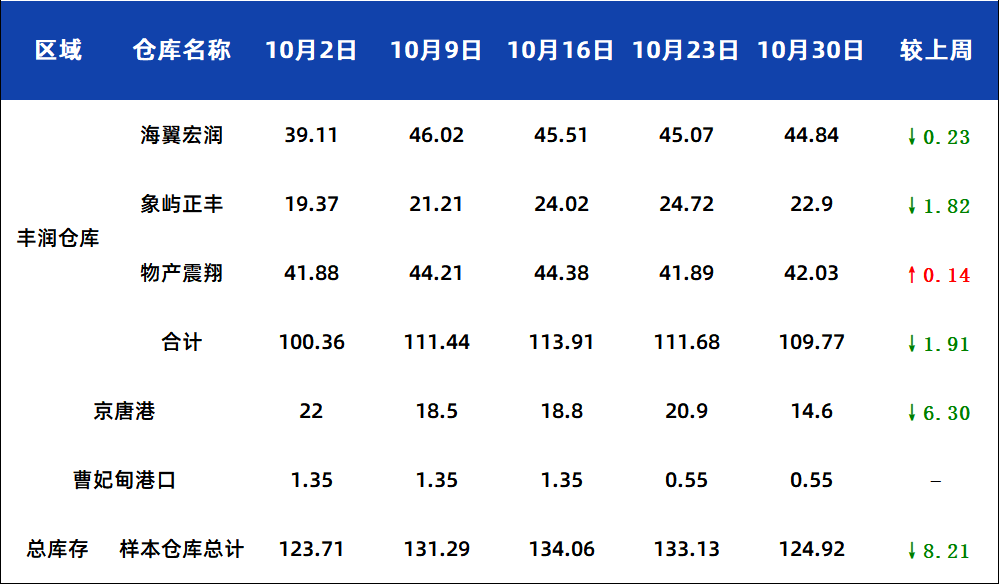 - 10月30日唐山钢坯库存周统计2025/10/30