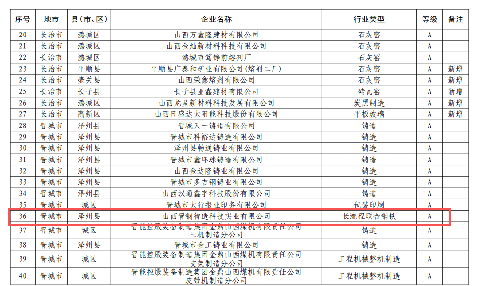山西省2025年第一批A级、B级、引领性企业名单