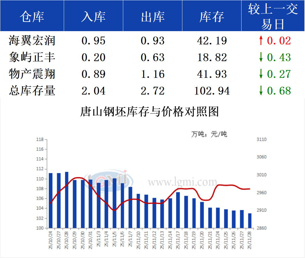 - 11月28日唐山钢坯库存早报2025/11/28