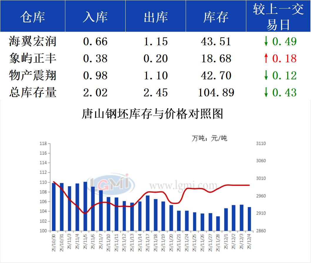 12月4日唐山钢坯库存早报