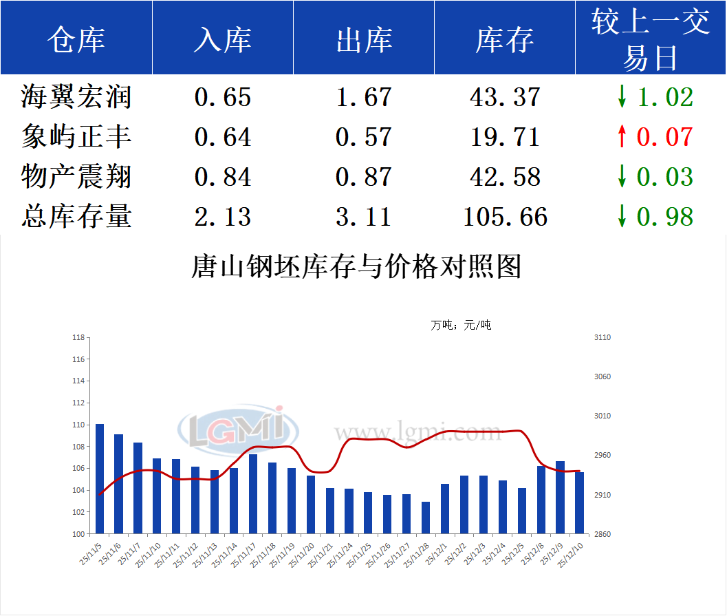 12月10日唐山钢坯库存早报