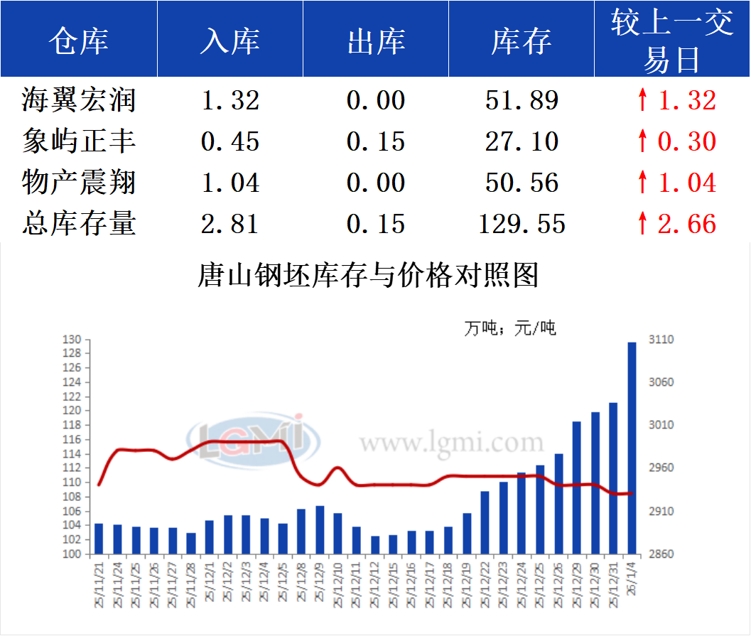 - 1月4日唐山钢坯库存早报2026/1/4