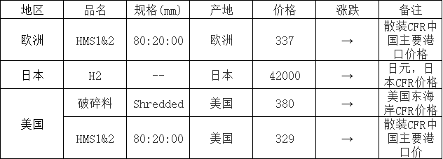 1月19日进口普碳废钢价格