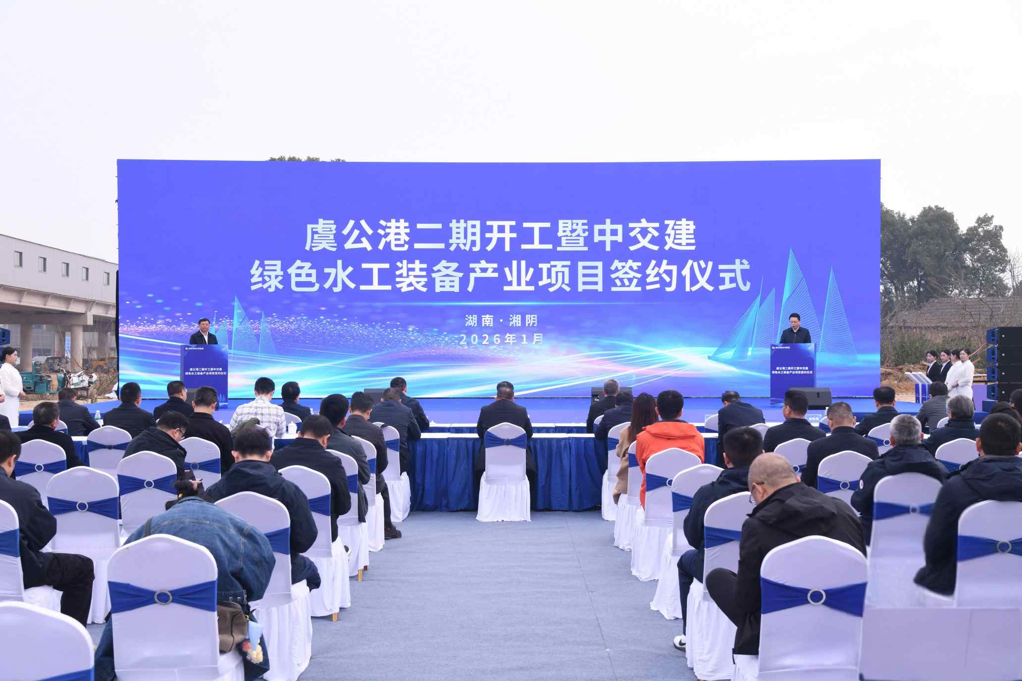 虞公港二期工程开工暨中交建绿色水工装备产业项目签约活动现场。单位供图