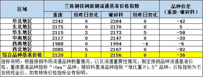 2月4日兰格钢铁网废钢流通基准价格指数为2138涨1:其中重废品种综合基准价格指数为2120涨1,破碎料品种综合基准价格指数为2156持平。分区域华北地区重废2242(0)破碎料2284(0);东北地区重废2175(0)破碎料2170(0);华东地区重废2115(3)破碎料2173(5);中南地区重废2117(0)破碎料2147(10);西南地区重废1988(0)破碎料1994(-4);西北地区重废2080(0)破碎料2167(0)。