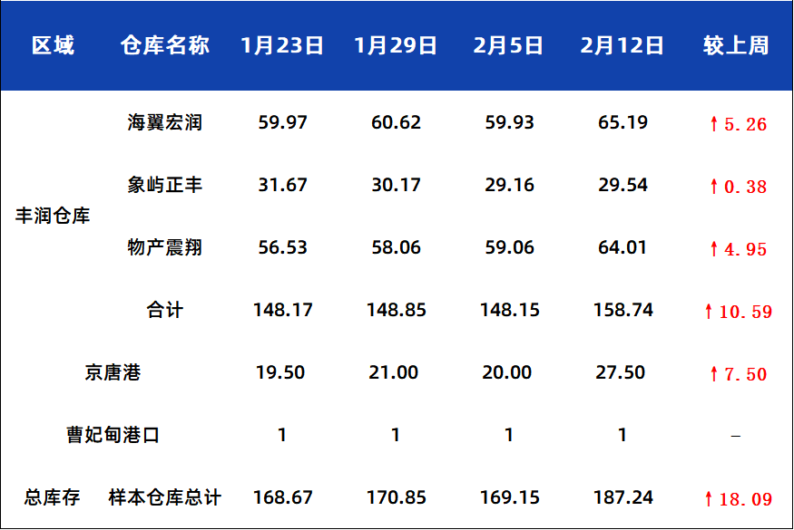 2月12日唐山钢坯库存周统计