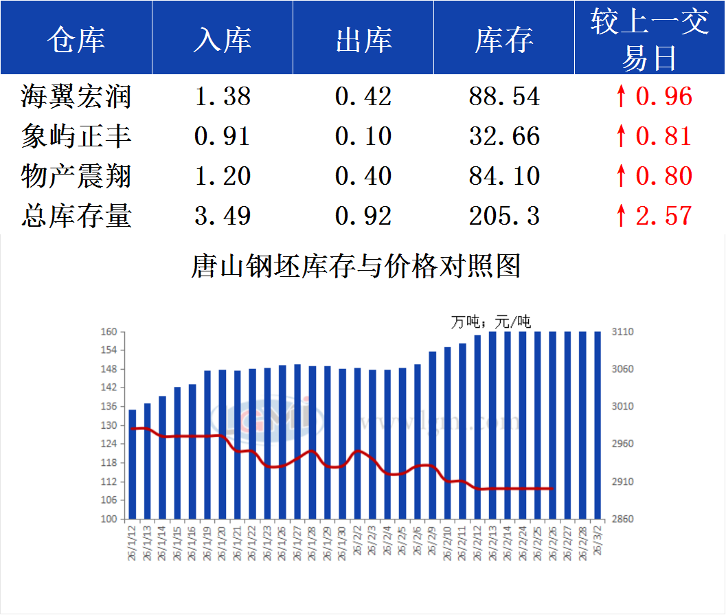 3月2日唐山钢坯库存早报