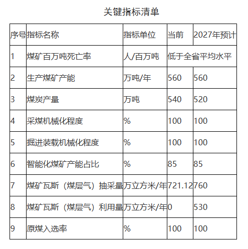 到2027年,全市煤矿安全生产形势持续稳定好转,百万吨死亡率低于全省平均水平,坚决防范和遏制重特大事故发生;煤炭资源配置更加优化,煤矿装备技术水平和生产效能进一步提高,煤炭产能稳定在560万吨/年;煤炭清洁开发利用水平稳步提升,绿色矿山建设扎实推进,智能化煤矿产能占比保持85%。