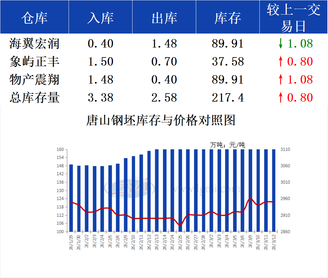 3月12日唐山钢坯库存早报