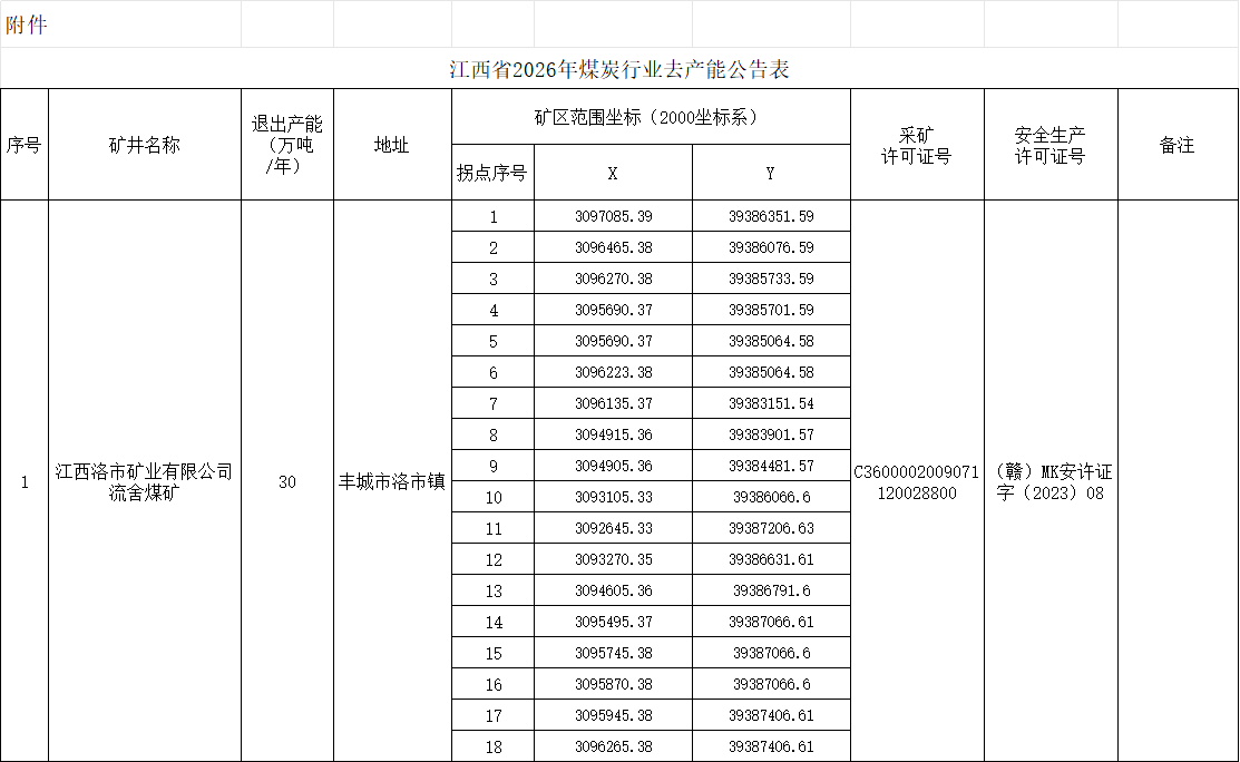 附件:江西省2026年煤炭行业去产能公告表.xls