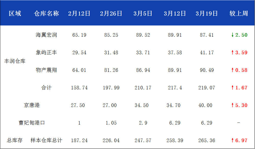 3月20日唐山钢坯库存周统计