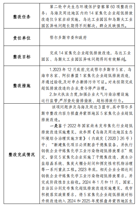鄂尔多斯市完成14家焦化企业超低排放改造