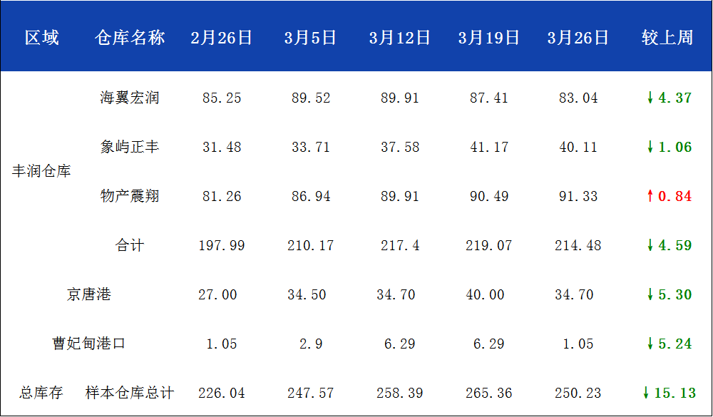 - 3月26日唐山钢坯库存周统计2026/3/26