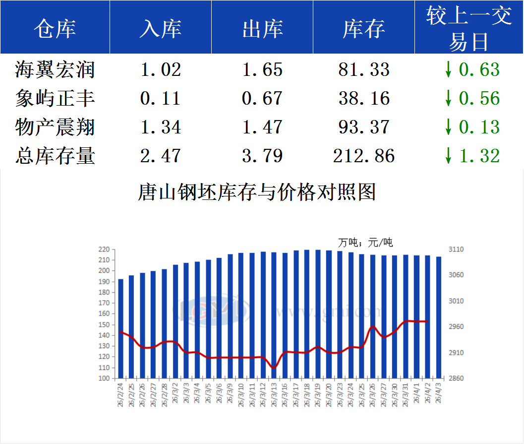 4月3日唐山钢坯库存早报