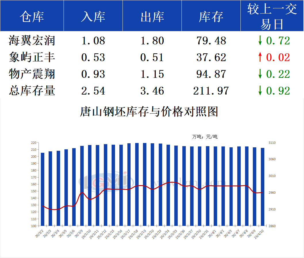 4月10日唐山钢坯库存早报