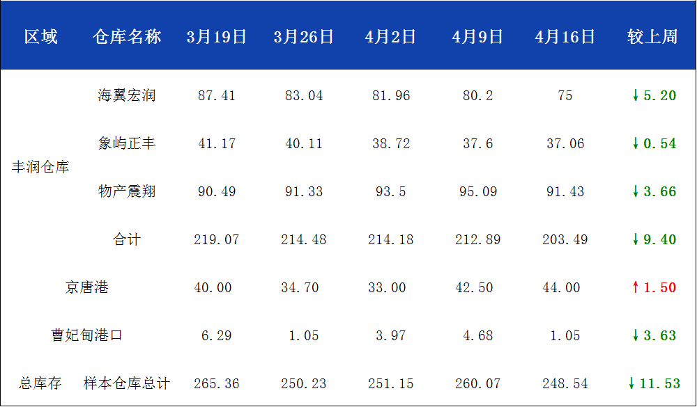 - 4月17日唐山钢坯库存周统计2026/4/17