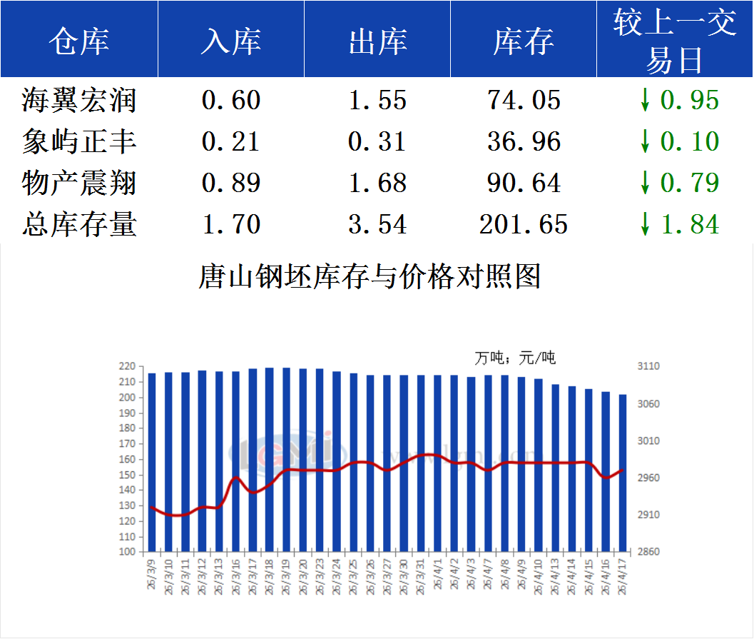 4月17日唐山钢坯库存早报